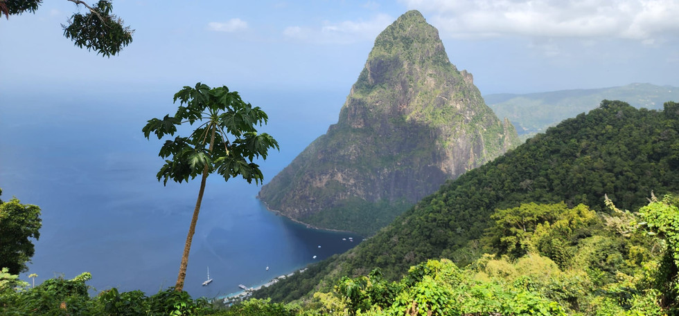 Upon reaching the peak of the Tet Paul Nature Trail, prepare for the breath-taking grandeur of Gros Piton, one of the most distinguishing landmarks of St. Lucia. A sight to behold, the mighty Gros Piton rises majestically from the crystal-clear turquoise waters of the Caribbean Sea.